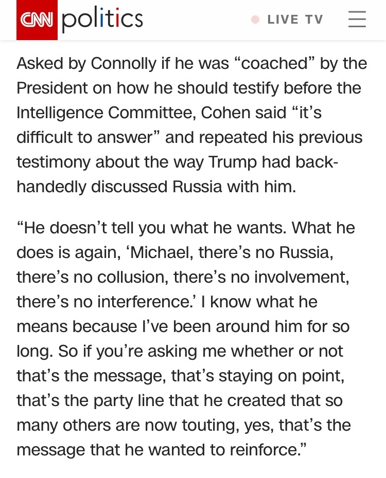 https://edition.cnn.com/2019/02/26/poli ... index.htmlLess than 24 hours before former Trump fixer Michael Cohen is scheduled to appear in an open hearing to discuss his relationship with the President of the United States and shed light on his involvement in a hush money scheme involving two women alleging they had affairs with the billionaire businessman, Florida Republican Rep. Matt Gaetz directly threatened Cohen via Twitter.