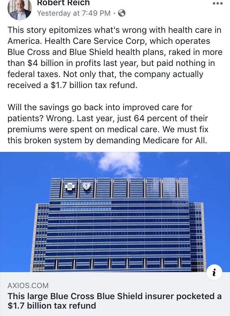 Of every dollar I pay for insurance, only 40c goes to healthcare of patients.