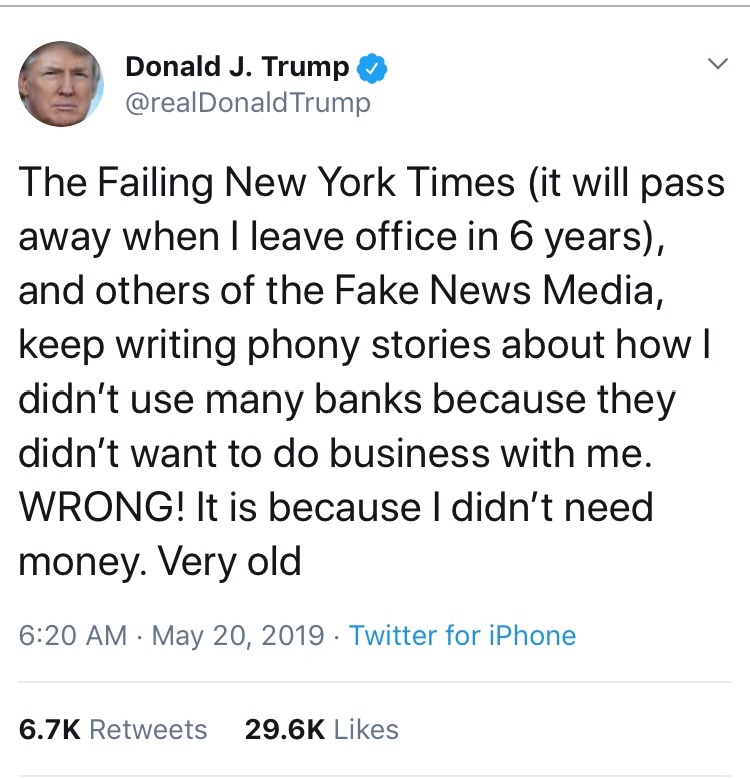 Trump said the “fake media … always uses unnamed sources (because their sources don’t even exist)”. But one former Deutsche Bank employee, Tammy McFadden, who reviewed some of the transactions, spoke to the Times on the record. She said she was fired last year after raising concerns about the bank’s practices, the Times said.