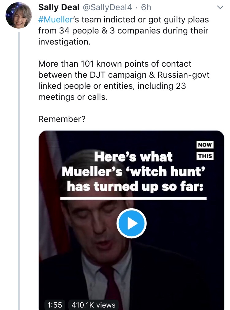 And then there's the whole 150 or so pages of the Mueller report about obstruction of justice that "completely exonerated" him.