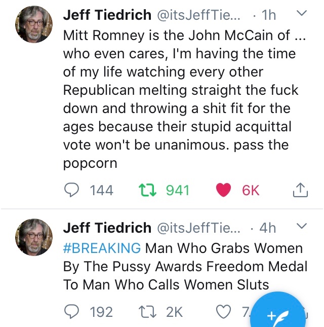 I'm sorry, I should have put a trigger warning on that one for you.Tyrannical wrote:Why yes they can.Brian Peacock wrote: ↑Sun Feb 02, 2020 9:48 pmHas Trump Obama and the Republicans Democrats now effectively defined the presidency as an office akin to that of an elected absolute monarch?