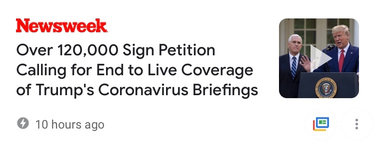 So you’re talking about 2.2 million deaths. If we could hold that down…between 100,000 and 200,000, and we all together have done a very good job. START MAKING VENTILATORS, NOW!!!!!! FORD, GET GOING ON VENTILATORS, FAST!!!!!! Invoke “P”. I want our life back again.