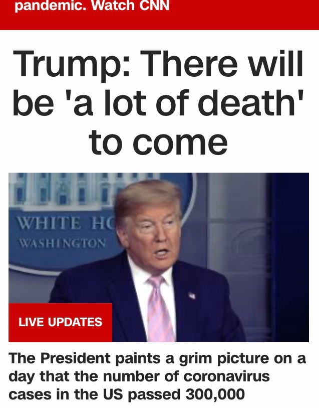 The thing is, I already agreed with you that President Trump is not the only person responsible for the US failure here. I think that he does bear a very significant part of the blame. Not only for his enabling of the dismantling of governmental efforts to get ahead of epidemics, but also for his "hey, it's not a problem/hey, it's not my problem' stance, as well as putting useless stuffed shirts Pence and Kushner in overall charge of the US response.