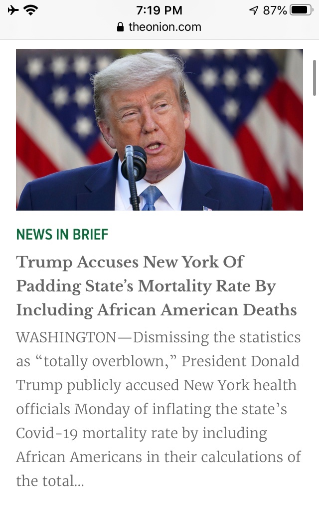 He also spent 9 minutes pushing hydroxychloroquine. Twice the amount of time that he spent talking about the victims.JimC wrote: ↑Sun Apr 26, 2020 11:20 pmFrom the Melbourne Age today: