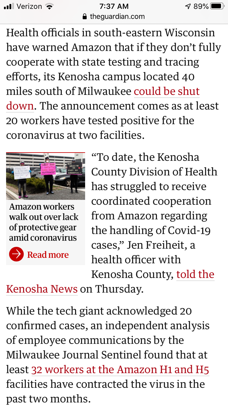 Well, they ought to shut down all small businesses, and only let big corporate giants open.Brian Peacock wrote: ↑Sat May 23, 2020 2:31 pmBezos doesn't care about that...