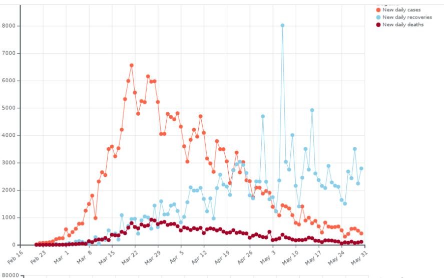 I meant the main hump of daily cases. This should be something of a model for the US for example. So 500 cases daily is where it will continue in Italy.