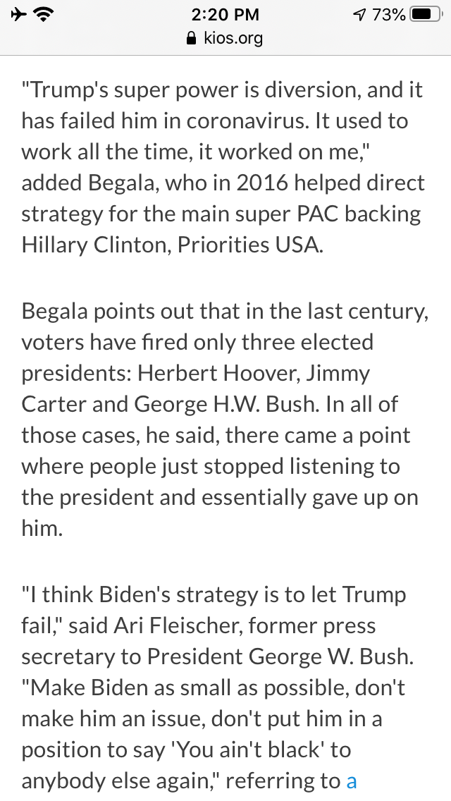 PR advisor: "Mr President, remember to emphasise that Biden is weak for hiding from the virus."