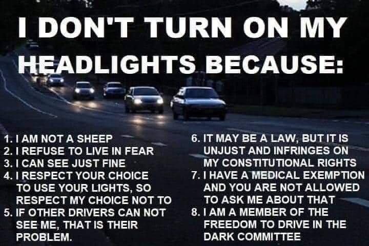 9. There is no scientific evidence headlights work.