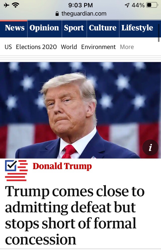 There's a government fact checker (not that he's called that) who's been swatting aside false claims about the election on the Cybersecurity & Infrastructure Security Agency website. Trump apparently wanted him fired and Chad Wolf, the acting head of the DHS, said 'no.' The story is from the New York Post, which has been mostly pro-Trump.