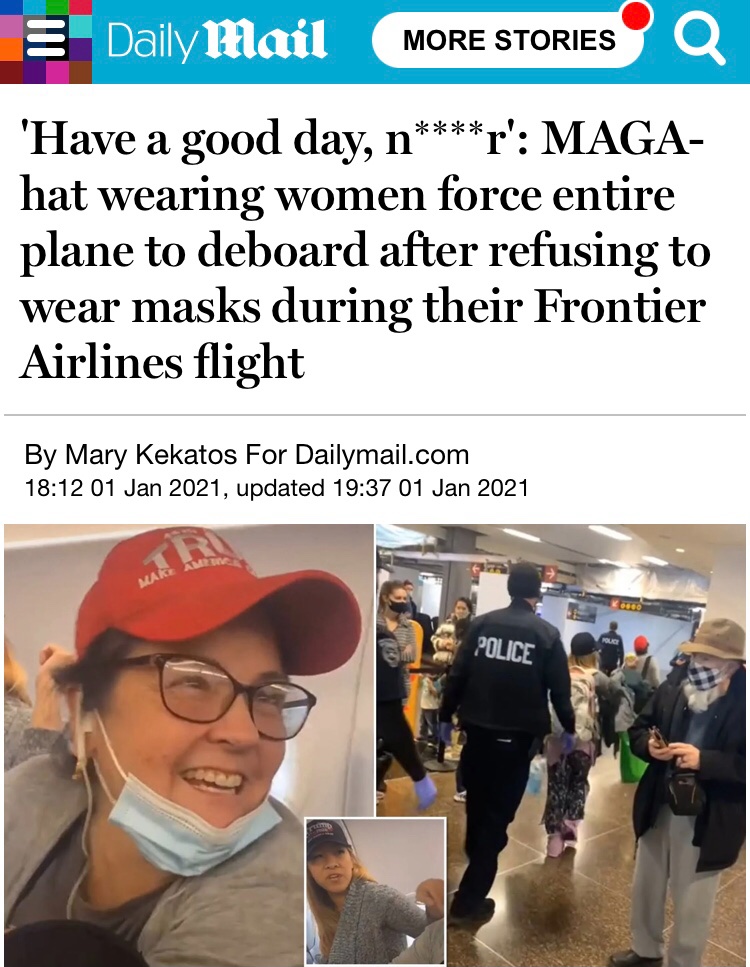 A woman yelled the n-word at passengers who were forced to deboard a plane after she and her friend refused to wear masks.