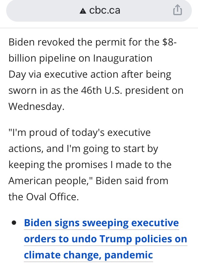 He could do that, have it approved and built, and still Alberta would blame him when the industry refuses to buy shitty Alberta tar sands crude.Woodbutcher wrote:I saw him in the news. He wants Trudeau to beg Biden to pass it.BarnettNewman wrote: ↑Mon Jan 18, 2021 5:12 pmAn Jason Kenney just lost his shit and about $7B in taxpayer money. That asshole is out on his ass in the next election.
