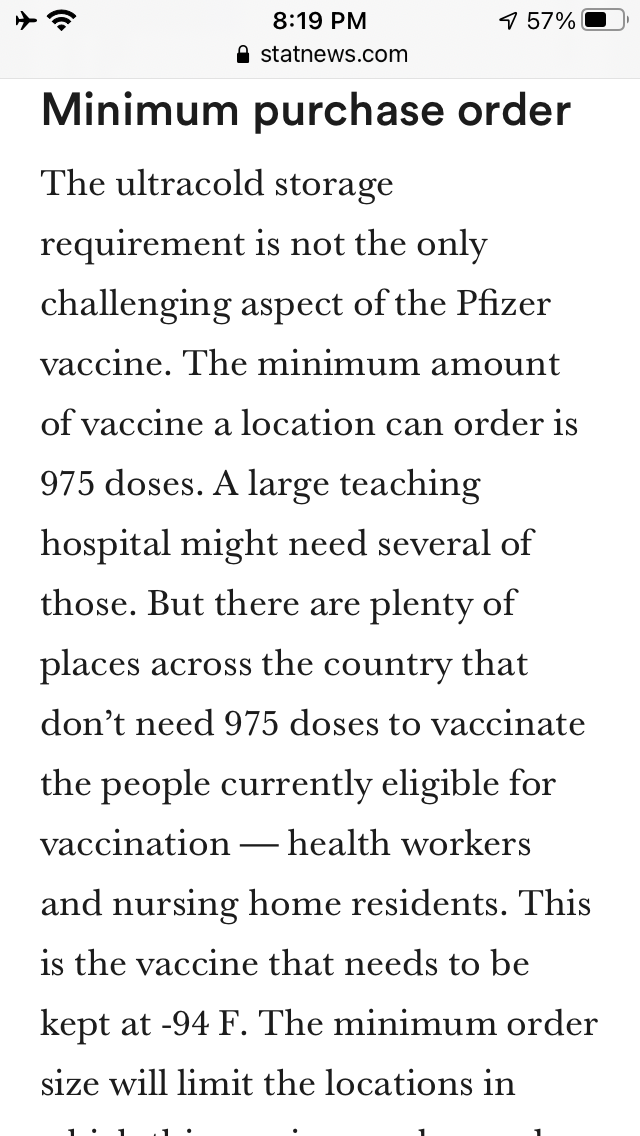 Even though it's all "free" the Pfizer has more of these cost issues than Moderna and J and J has no distribution issues.