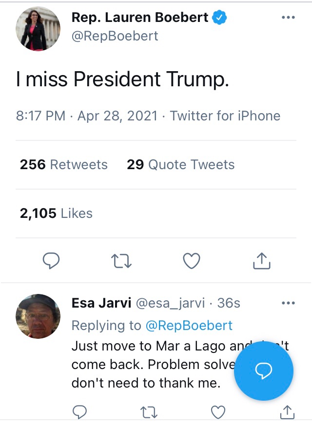 Getting back to the thread topic, Ex-President Trump was interviewed on Bongino today. (or it was released today). Turnip exagerrated in the usual ways, and hinted that the time to announce (if he was running 2024) would be right after the midterms. There was other stuff, including stuff that made me and my sweetheart laugh out loud (the guy is SO over-the-top-full-of-shit)