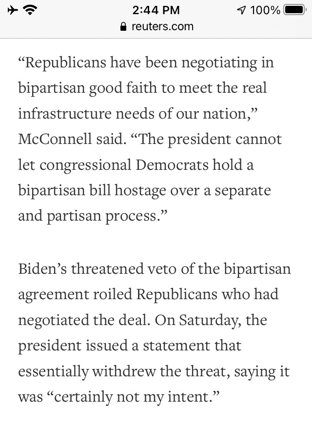 You never know. Sneaky Democrats might use the infrastructure money to stop global warming or to help black people vote.