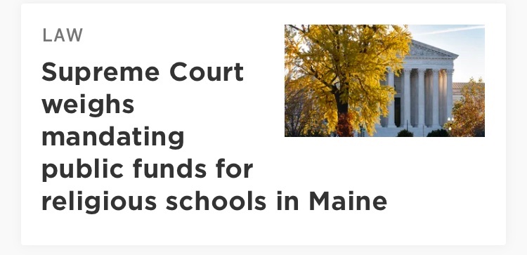 “In the 19th century, Maine’s public schools expelled students for adhering to their faith,” they claim, citing one example of a Catholic student expelled for not completing lessons off a Protestant bible. Now, according to the brief, Maine is committing a similarly repugnant sin against religious people by refusing to pay state residents’ tuition at private religious schools.