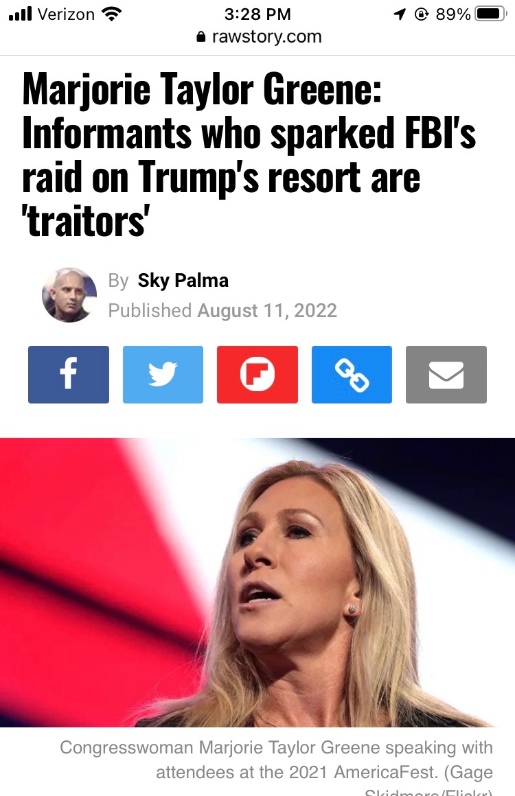 Greene was reacting to a Newsweek report from Wednesday based on an inside source who said an informant told FBI agents where to find alleged classified documents Trump had taken from the White House at the end of his presidency.