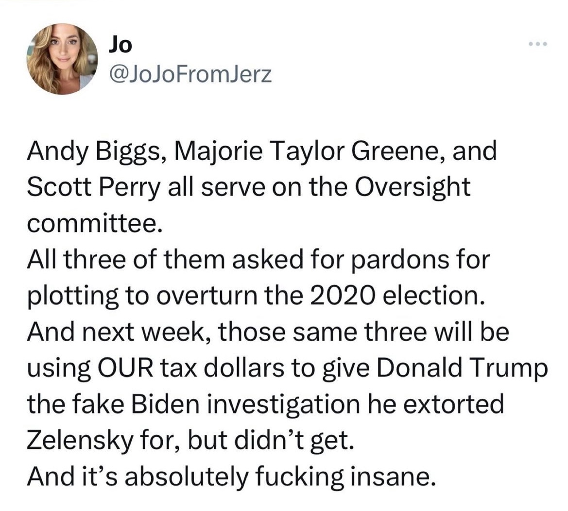 And they'd probably get Matt Gaetz as Speaker for their trouble.Brian Peacock wrote: ↑Wed Sep 20, 2023 10:01 pmIf they oust him now he'll become more powerful than they can possibly imaging.