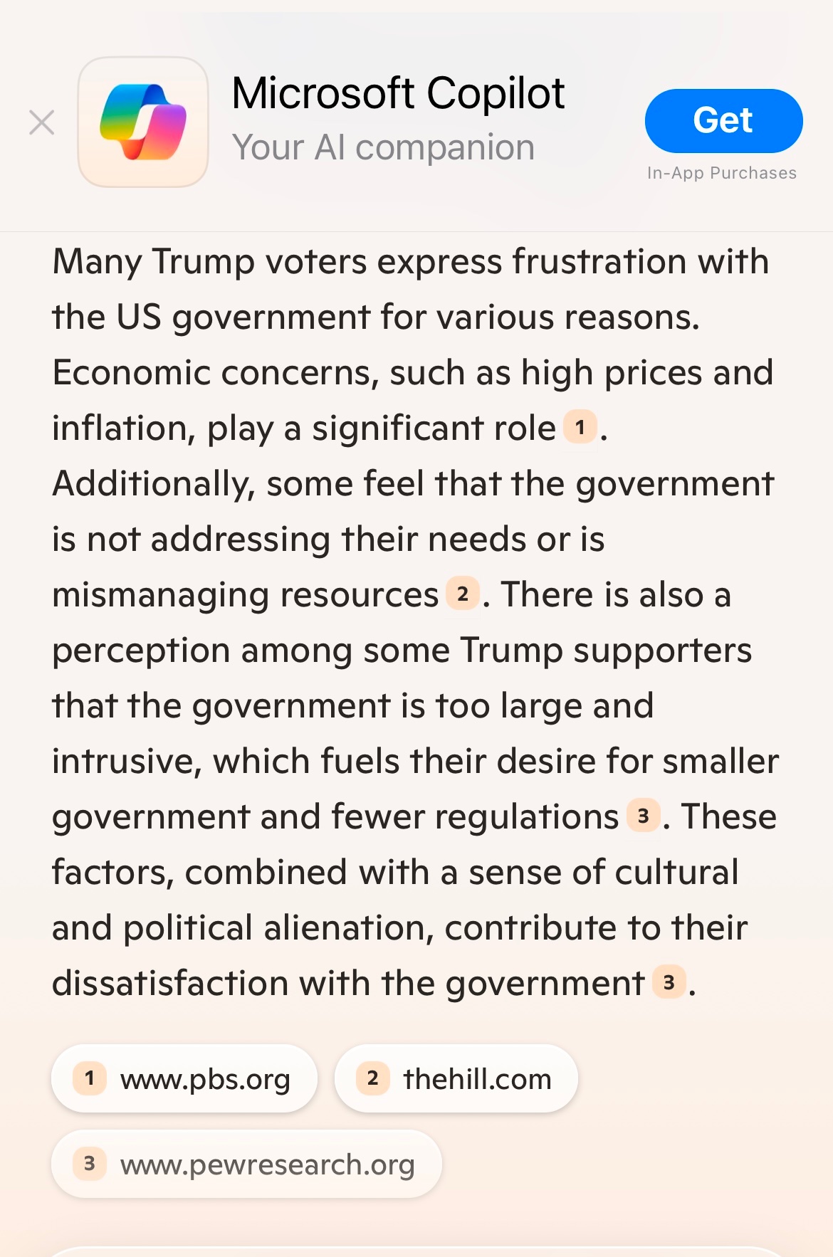 I asked Mirosoft AI (Copilot) a broad question. Why do Trump voters hate the US government?
