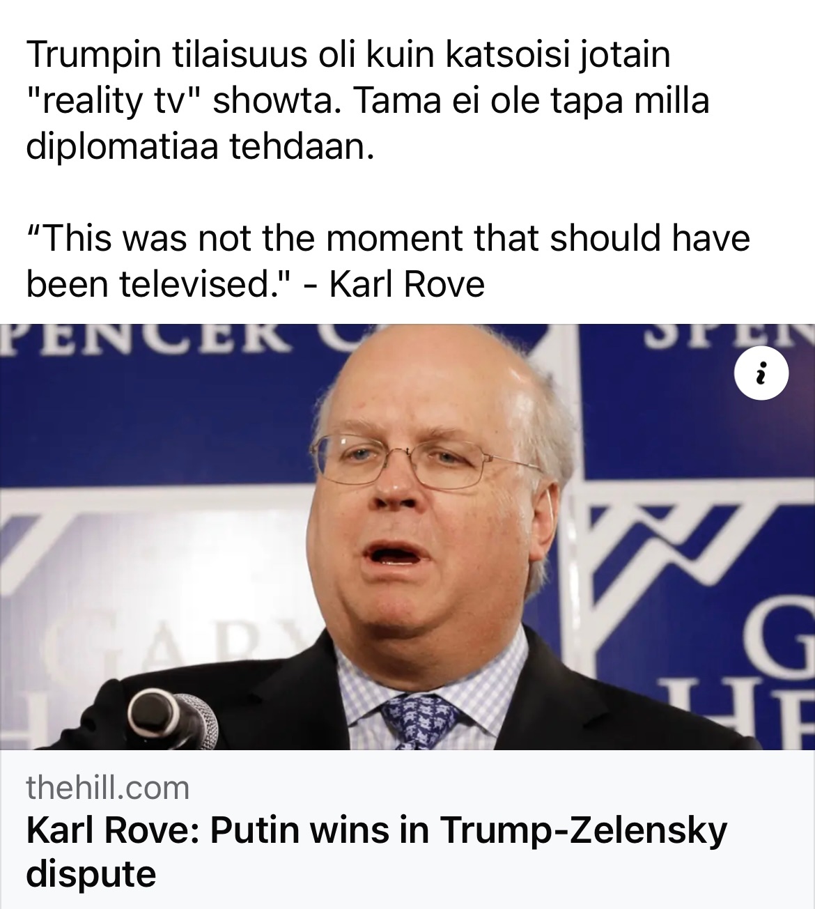 "New York Times" columnist, conservative Bret Stephens wrote "A Day of American Infamy.""While Trump’s abuse of Zelensky might delight the MAGA crowd, it isn’t likely to play well with most voters, including the almost 30 percent of Republicans who, even now, believe it’s in our interest to stand with Ukraine. And while most Americans may want to see the war in Ukraine end, they almost surely don’t want to see it end on Vladimir Putin’s terms."