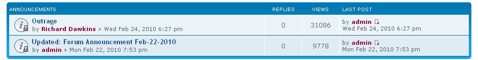 I don't know if anyone else has picked up on this before. Access the "Outrage" notice direct from the index link, everything looks OK. But now go into a thread listing in any of the forum sections, and you see something odd: